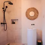 De ramen van de woning kijken uit over het zwembad. De badkamer is voorzien van een apart toilet, een badkuip en een douche en biedt een haardroger en handdoeken aan.